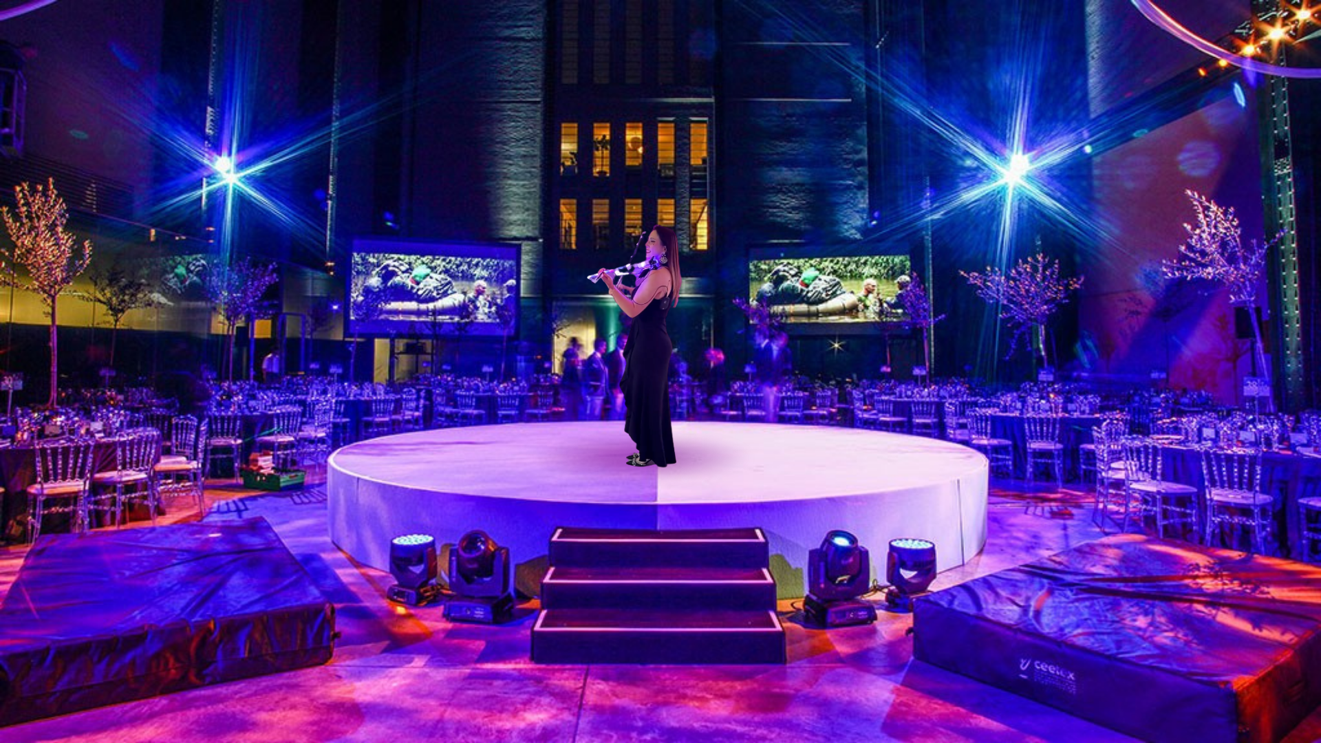 Designers are placing performers at the entrance, in the middle of the dance floor, or as the centerpiece of a 360° guest experience. The musician becomes a sculptural element, integrated intentionally into the layout.